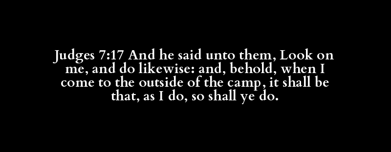 Judges 7:17 And he said unto them, Look on me, and do likewise: and, behold, when I come to the outside of the camp, it shall be that, as I do, so shall ye do.