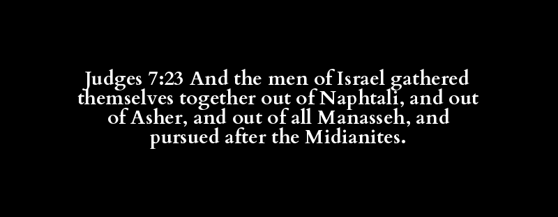 Judges 7:23 And the men of Israel gathered themselves together out of Naphtali, and out of Asher, and out of all Manasseh, and pursued after the Midianites.