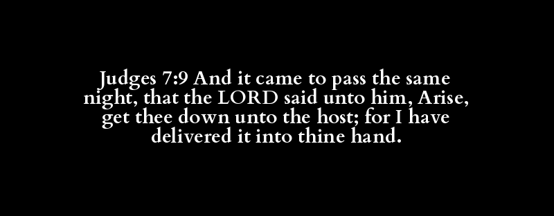 Judges 7:9 And it came to pass the same night, that the LORD said unto him, Arise, get thee down unto the host; for I have delivered it into thine hand.