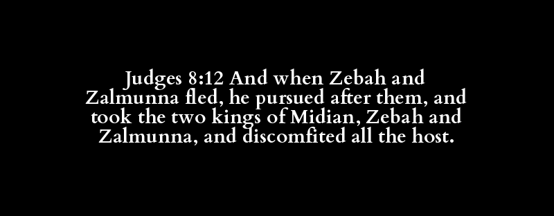 Judges 8:12 And when Zebah and Zalmunna fled, he pursued after them, and took the two kings of Midian, Zebah and Zalmunna, and discomfited all the host.