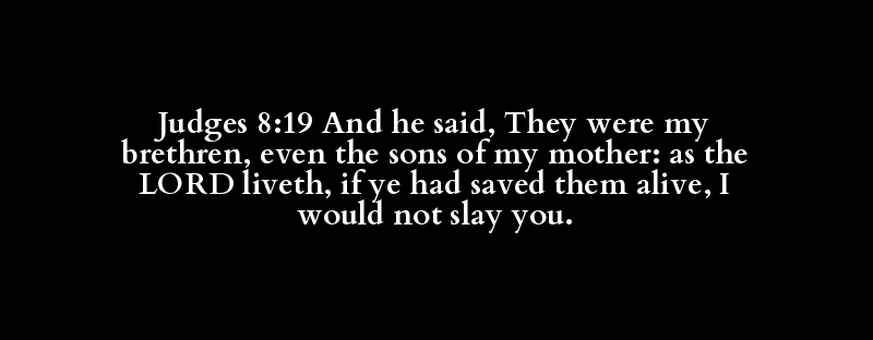 Judges 8:19 And he said, They were my brethren, even the sons of my mother: as the LORD liveth, if ye had saved them alive, I would not slay you.