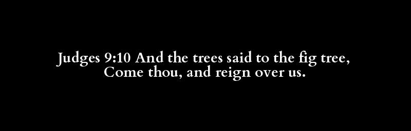 Judges 9:10 And the trees said to the fig tree, Come thou, and reign over us.