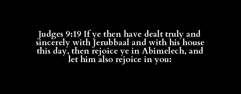 Judges 9:19 If ye then have dealt truly and sincerely with Jerubbaal and with his house this day, then rejoice ye in Abimelech, and let him also rejoice in you: