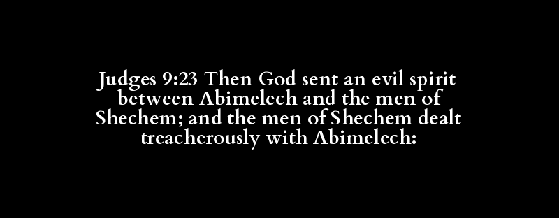 Judges 9:23 Then God sent an evil spirit between Abimelech and the men of Shechem; and the men of Shechem dealt treacherously with Abimelech: