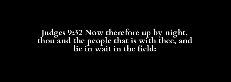 Judges 9:32 Now therefore up by night, thou and the people that is with thee, and lie in wait in the field: