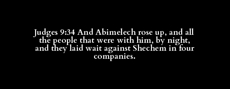 Judges 9:34 And Abimelech rose up, and all the people that were with him, by night, and they laid wait against Shechem in four companies.