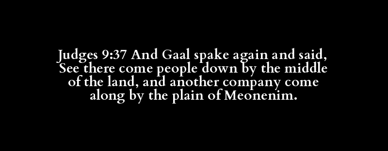 Judges 9:37 And Gaal spake again and said, See there come people down by the middle of the land, and another company come along by the plain of Meonenim.