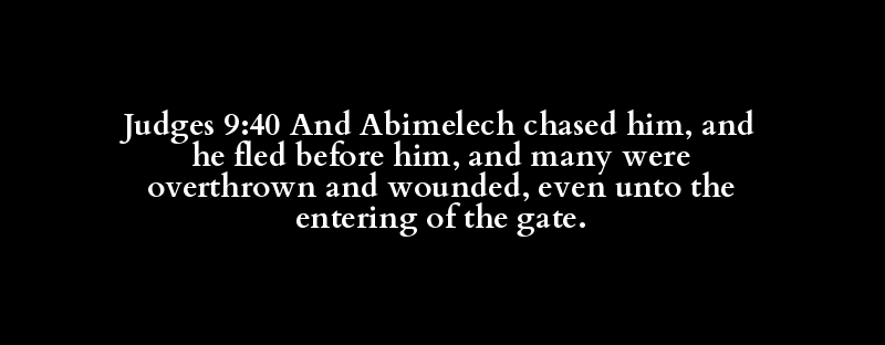 Judges 9:40 And Abimelech chased him, and he fled before him, and many were overthrown and wounded, even unto the entering of the gate.