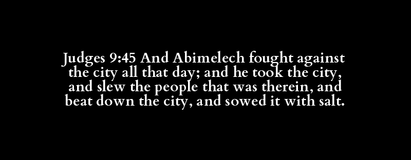 Judges 9:45 And Abimelech fought against the city all that day; and he took the city, and slew the people that was therein, and beat down the city, and sowed it with salt.