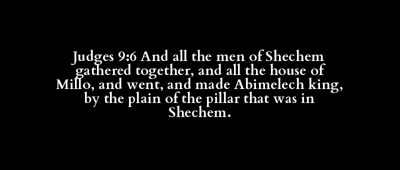 Judges 9:6 And all the men of Shechem gathered together, and all the house of Millo, and went, and made Abimelech king, by the plain of the pillar that was in Shechem.