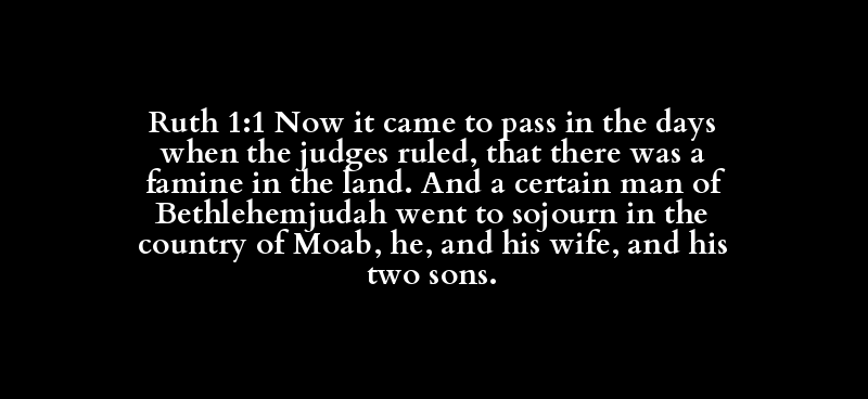 Ruth 1:1 Now it came to pass in the days when the judges ruled, that there was a famine in the land. And a certain man of Bethlehemjudah went to sojourn in the country of Moab, he, and his wife, and his two sons.