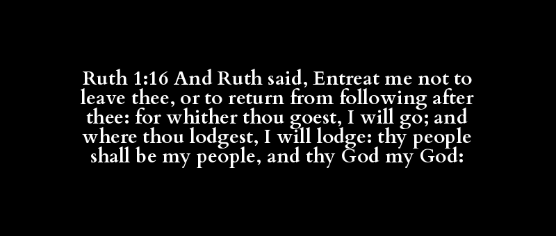 Ruth 1:16 And Ruth said, Entreat me not to leave thee, or to return from following after thee: for whither thou goest, I will go; and where thou lodgest, I will lodge: thy people shall be my people, and thy God my God: