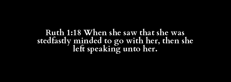 Ruth 1:18 When she saw that she was stedfastly minded to go with her, then she left speaking unto her.