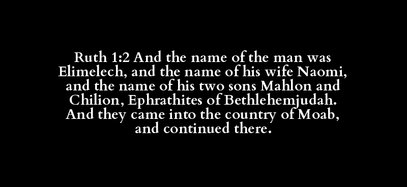 Ruth 1:2 And the name of the man was Elimelech, and the name of his wife Naomi, and the name of his two sons Mahlon and Chilion, Ephrathites of Bethlehemjudah. And they came into the country of Moab, and continued there.