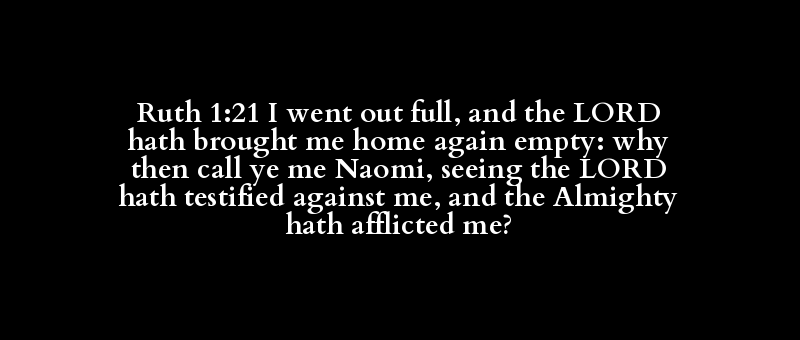 Ruth 1:21 I went out full, and the LORD hath brought me home again empty: why then call ye me Naomi, seeing the LORD hath testified against me, and the Almighty hath afflicted me?