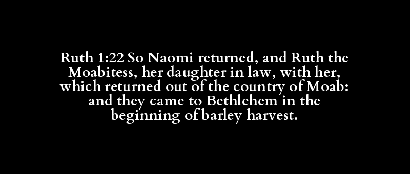 Ruth 1:22 So Naomi returned, and Ruth the Moabitess, her daughter in law, with her, which returned out of the country of Moab: and they came to Bethlehem in the beginning of barley harvest.