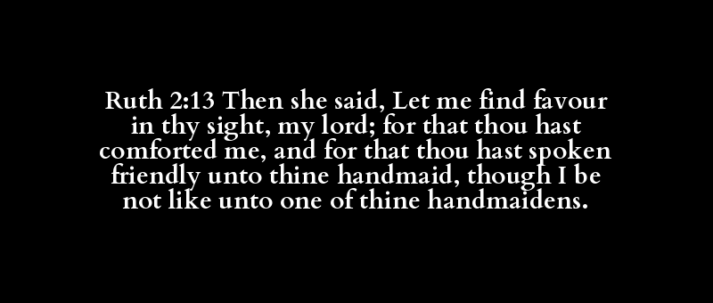 Ruth 2:13 Then she said, Let me find favour in thy sight, my lord; for that thou hast comforted me, and for that thou hast spoken friendly unto thine handmaid, though I be not like unto one of thine handmaidens.