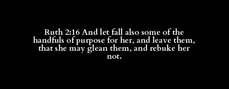 Ruth 2:16 And let fall also some of the handfuls of purpose for her, and leave them, that she may glean them, and rebuke her not.