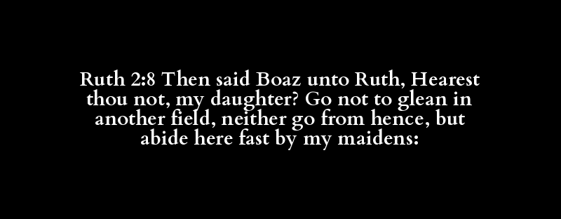 Ruth 2:8 Then said Boaz unto Ruth, Hearest thou not, my daughter? Go not to glean in another field, neither go from hence, but abide here fast by my maidens: