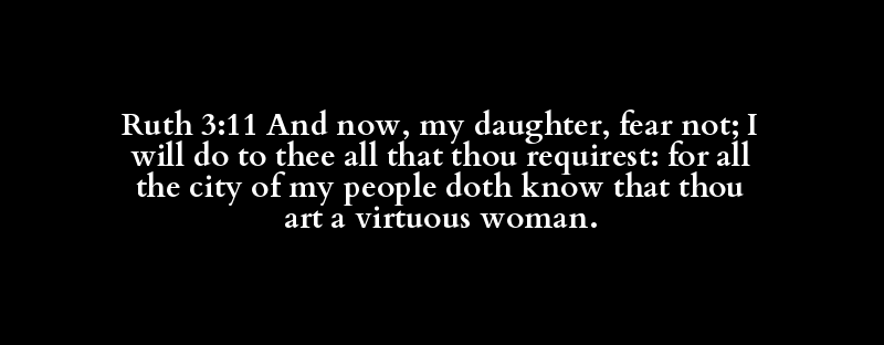 Ruth 3:11 And now, my daughter, fear not; I will do to thee all that thou requirest: for all the city of my people doth know that thou art a virtuous woman.