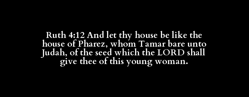 Ruth 4:12 And let thy house be like the house of Pharez, whom Tamar bare unto Judah, of the seed which the LORD shall give thee of this young woman.