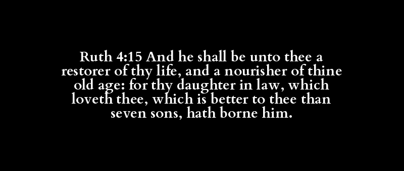 Ruth 4:15 And he shall be unto thee a restorer of thy life, and a nourisher of thine old age: for thy daughter in law, which loveth thee, which is better to thee than seven sons, hath borne him.