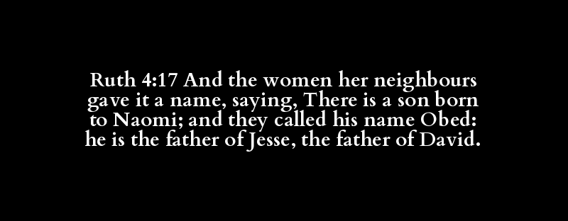Ruth 4:17 And the women her neighbours gave it a name, saying, There is a son born to Naomi; and they called his name Obed: he is the father of Jesse, the father of David.