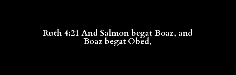 Ruth 4:21 And Salmon begat Boaz, and Boaz begat Obed,