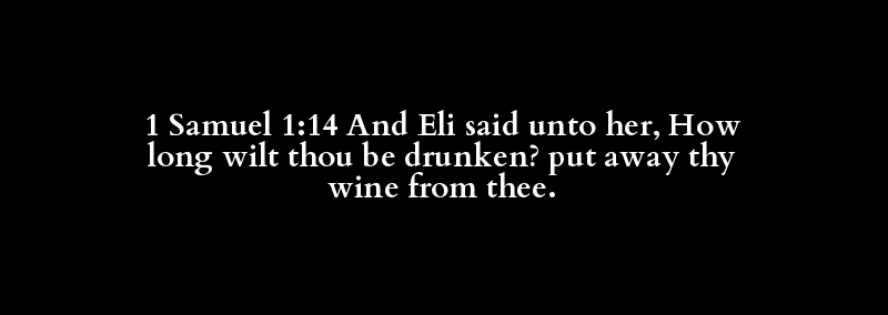 1 Samuel 1:14 And Eli said unto her, How long wilt thou be drunken? put away thy wine from thee.