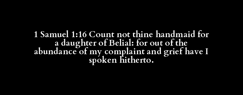 1 Samuel 1:16 Count not thine handmaid for a daughter of Belial: for out of the abundance of my complaint and grief have I spoken hitherto.