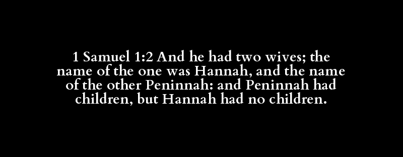 1 Samuel 1:2 And he had two wives; the name of the one was Hannah, and the name of the other Peninnah: and Peninnah had children, but Hannah had no children.