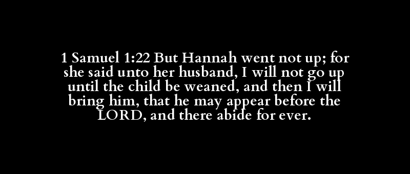 1 Samuel 1:22 But Hannah went not up; for she said unto her husband, I will not go up until the child be weaned, and then I will bring him, that he may appear before the LORD, and there abide for ever.
