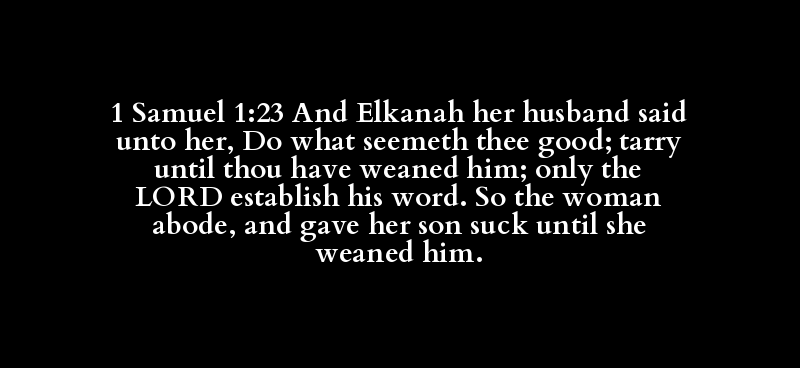 1 Samuel 1:23 And Elkanah her husband said unto her, Do what seemeth thee good; tarry until thou have weaned him; only the LORD establish his word. So the woman abode, and gave her son suck until she weaned him.