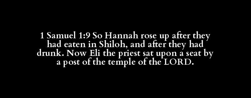 1 Samuel 1:9 So Hannah rose up after they had eaten in Shiloh, and after they had drunk. Now Eli the priest sat upon a seat by a post of the temple of the LORD.