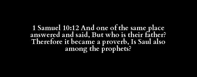 1 Samuel 10:12 And one of the same place answered and said, But who is their father? Therefore it became a proverb, Is Saul also among the prophets?