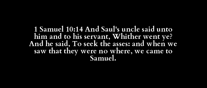 1 Samuel 10:14 And Saul's uncle said unto him and to his servant, Whither went ye? And he said, To seek the asses: and when we saw that they were no where, we came to Samuel.