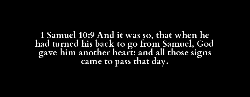 1 Samuel 10:9 And it was so, that when he had turned his back to go from Samuel, God gave him another heart: and all those signs came to pass that day.