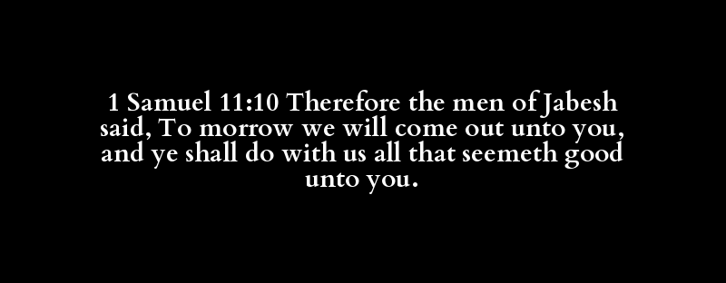 1 Samuel 11:10 Therefore the men of Jabesh said, To morrow we will come out unto you, and ye shall do with us all that seemeth good unto you.