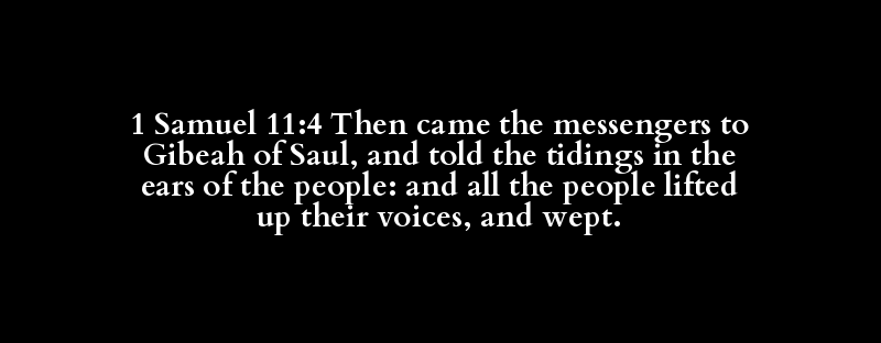 1 Samuel 11:4 Then came the messengers to Gibeah of Saul, and told the tidings in the ears of the people: and all the people lifted up their voices, and wept.
