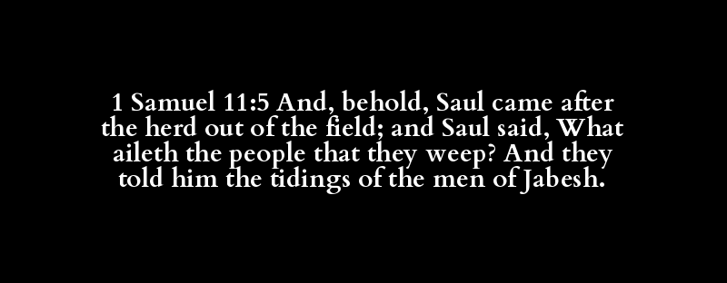 1 Samuel 11:5 And, behold, Saul came after the herd out of the field; and Saul said, What aileth the people that they weep? And they told him the tidings of the men of Jabesh.
