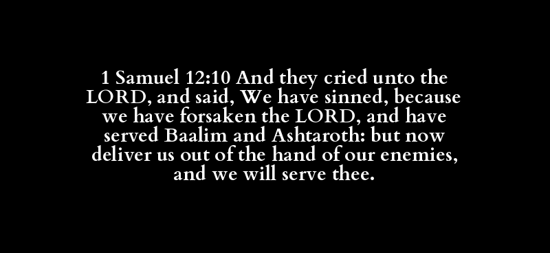 1 Samuel 12:10 And they cried unto the LORD, and said, We have sinned, because we have forsaken the LORD, and have served Baalim and Ashtaroth: but now deliver us out of the hand of our enemies, and we will serve thee.
