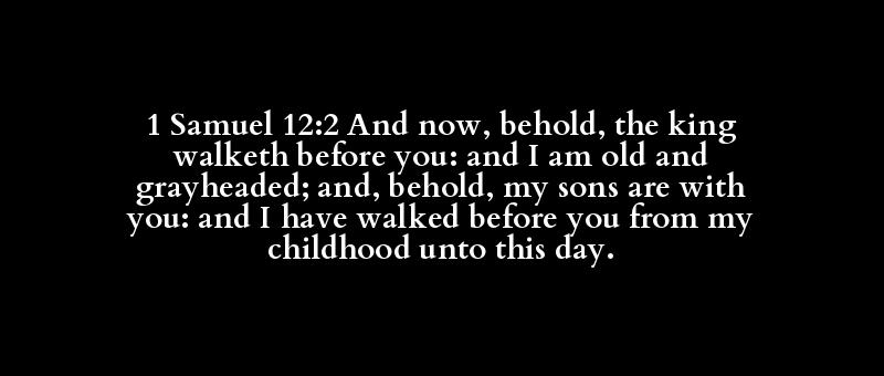 1 Samuel 12:2 And now, behold, the king walketh before you: and I am old and grayheaded; and, behold, my sons are with you: and I have walked before you from my childhood unto this day.