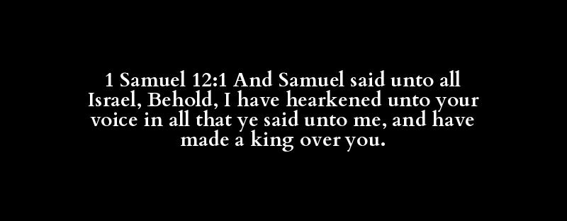 1 Samuel 12:1 And Samuel said unto all Israel, Behold, I have hearkened unto your voice in all that ye said unto me, and have made a king over you.