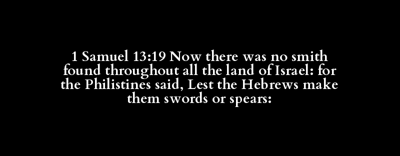 1 Samuel 13:19 Now there was no smith found throughout all the land of Israel: for the Philistines said, Lest the Hebrews make them swords or spears: