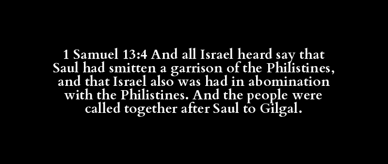 1 Samuel 13:4 And all Israel heard say that Saul had smitten a garrison of the Philistines, and that Israel also was had in abomination with the Philistines. And the people were called together after Saul to Gilgal.