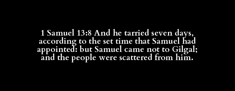 1 Samuel 13:8 And he tarried seven days, according to the set time that Samuel had appointed: but Samuel came not to Gilgal; and the people were scattered from him.