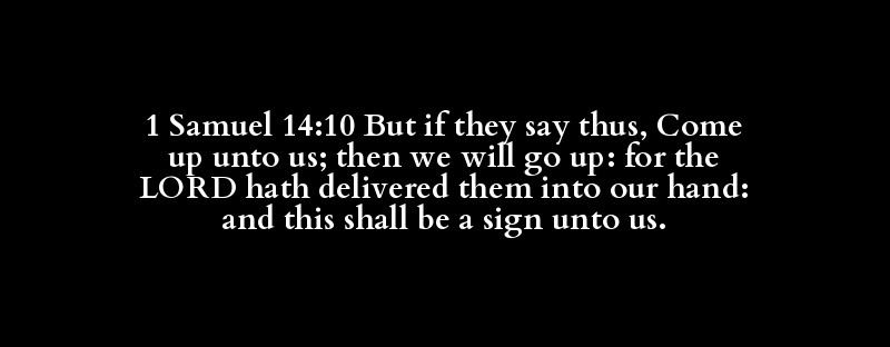 1 Samuel 14:10 But if they say thus, Come up unto us; then we will go up: for the LORD hath delivered them into our hand: and this shall be a sign unto us.