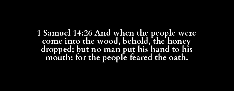 1 Samuel 14:26 And when the people were come into the wood, behold, the honey dropped; but no man put his hand to his mouth: for the people feared the oath.