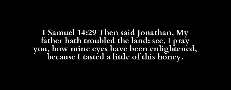 1 Samuel 14:29 Then said Jonathan, My father hath troubled the land: see, I pray you, how mine eyes have been enlightened, because I tasted a little of this honey.