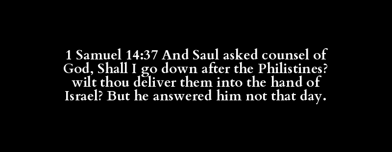1 Samuel 14:37 And Saul asked counsel of God, Shall I go down after the Philistines? wilt thou deliver them into the hand of Israel? But he answered him not that day.